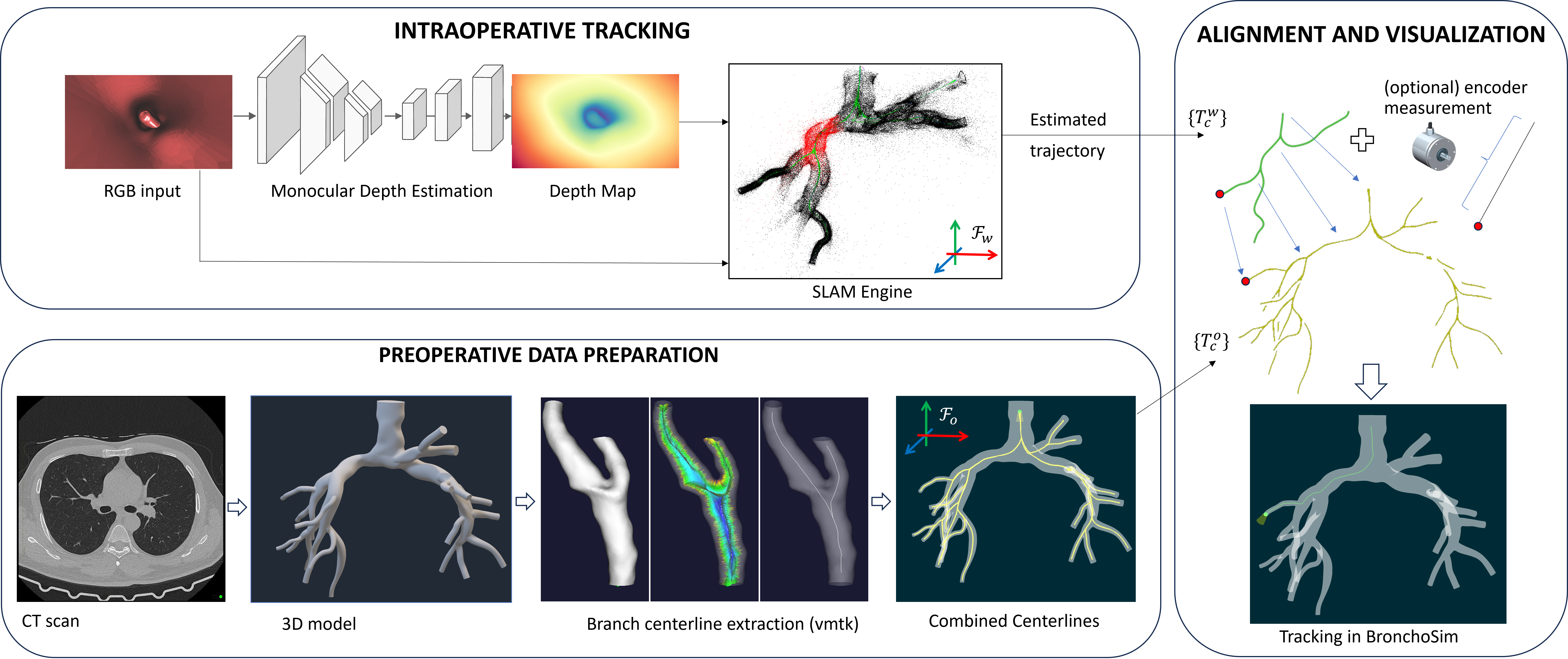 Solution: development of a new open source framework for robotic bronchoscopy navigation and a new SLAM method combining MDE and CT scans priors with the camera RGB images