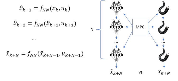 $$ x_{k+1} = f(x_k , u_k ) \approx f_{NN}(x_k , u_k ) $$